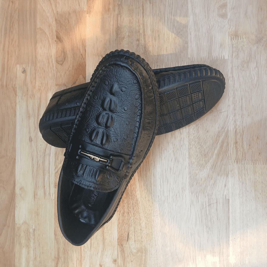 Giày lười da bò dập vân cá sấu là mẫu giày không dây được làm từ da bò thật nhưng có bề mặt được dập vân họa tiết giống da cá sấu, tạo vẻ sang trọng, đẳng cấp hơn so với da trơn thông thường — rất phù hợp cho cả đi làm, đi chơi, hoặc dự sự kiện smart-casual.