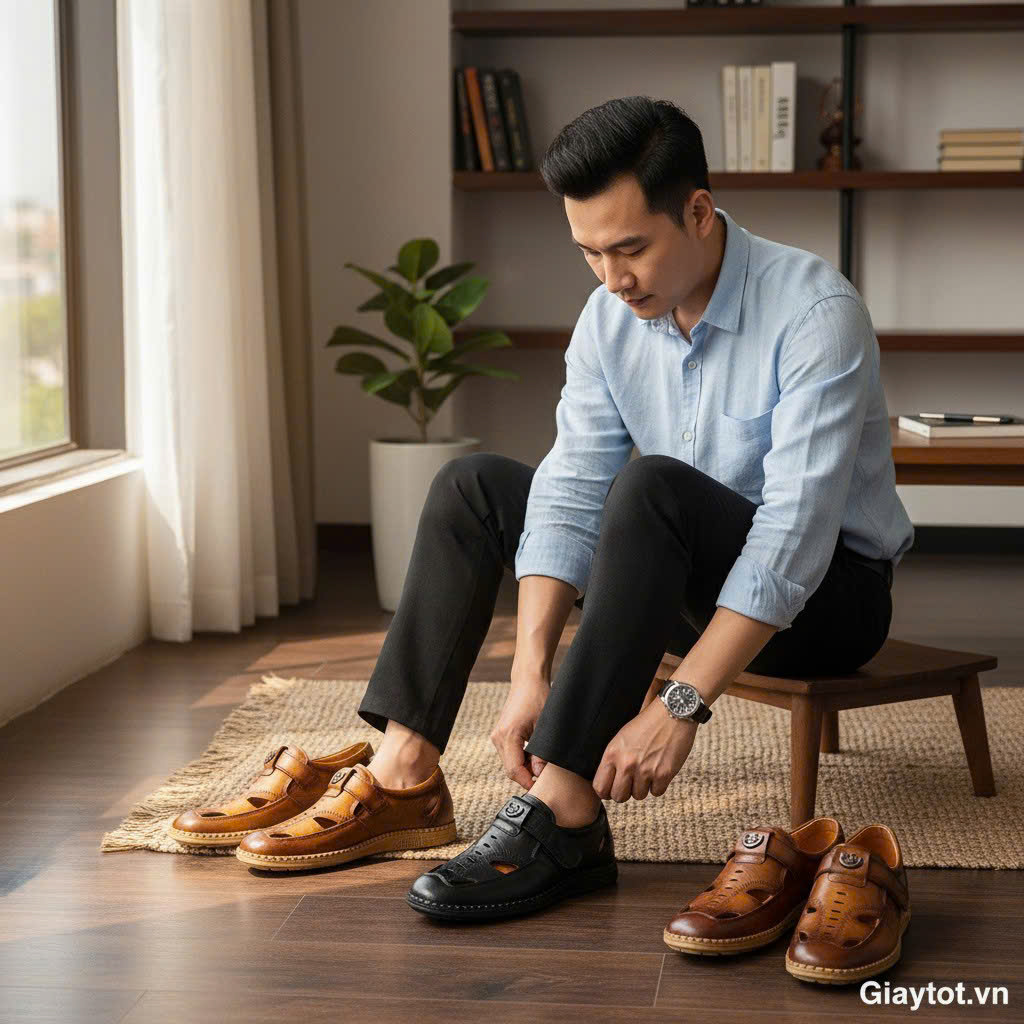 👞 Giày Lười Da Bò Đục Lỗ Cao Cấp